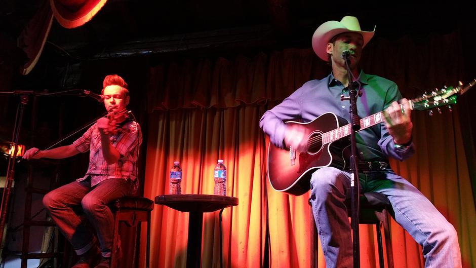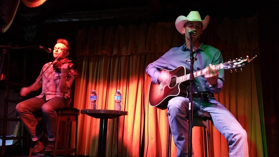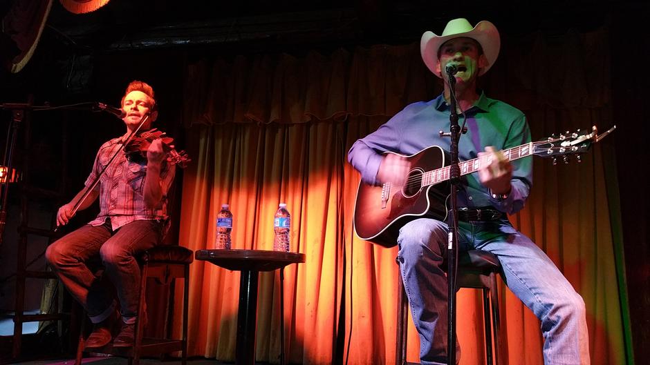 The second Wade appeared the crowd went wild. They screamed, cheered, clapped and I even saw tears. The love they have for this man was felt so strongly that it was hard to not be emotional. He of course began his set with "On a Good Night" which generated more screams from his fans. It was definitely a favorite song of everyone's. He continued with "a Good Day to Go Crazy", which again led to more cheering and approval. The fiddle player that was with him, Jason Barlow, was outstanding and so passionate about his craft. The two together carried forward with "The Day She Left Tulsa" and "Right Where I Want You" before getting to his first story of the night. He told us how his very loving mother encouraged him to write like he prayed. He joked and said she has told him that she should be earning royalties for her contribution to his song "What's a Broken Heart For You?". The delivery of this song was very emotional and the audience was feeling it. The room was silent and listening intently to the story within the lyrics. It was beautiful. He was so endearing to his mother and told everyone "I love my mamma". As the night went on he did not disappoint as he sang all of his hits including "I'm Still Dancing With You" inspiring couples to begin dancing. You could see Wade smiling in admiration. He really seemed to enjoy that people were taking pleasure in having a good time.