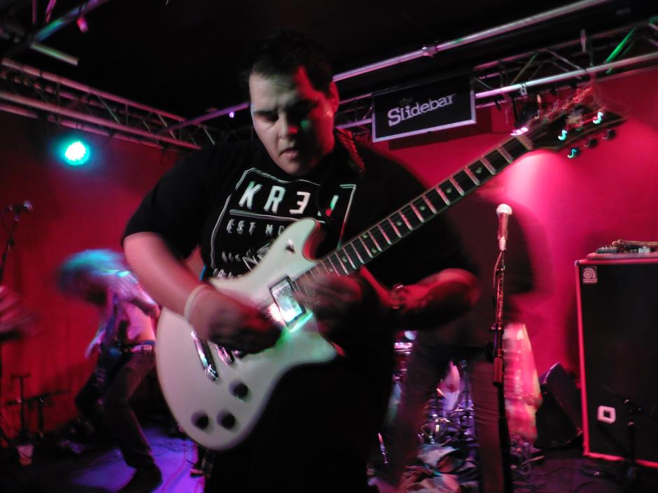 Before Beneath graced us with their presence, I got to witness a band that I never heard before, but I was curious. That band is known as The ReAktion. Coming all the way from Santiago, Chile, ReAktion is a three-piece act that electrified the crowd with their own brand of rock ‘n’ roll music. They combined the styles of electronica with the riffs of heavy metal, which I will admit is an odd combination. I am sure it has been done before, but this is really the first time I actually enjoyed how it was done. Led by guitarist/vocalist Simon Rojas, the group got the event off on the right foot. Armed with heavy licks and danceable beats, ReAktion provided us with stellar tunes that send positive messages about what’s happening in the world today. My favorites were “Ten Steps to Success,” and “The Lie That You Believe.” Not only can he sing and scream, he can play solid riffs on the axe. Outstanding bass riffs were played by Garrett Wolf and killer drumming by Felipe Alvarez, who also was in charge of the electronica on his computer. According to Rojas, there were more members, but they had to leave for personal reasons, leaving him to being the sole original member performing. Honestly, I like this group as a 3 piece, as it reminds me of Rush meets Skrillex. This was a great band to start the night and I will be watching to see where they go from here.