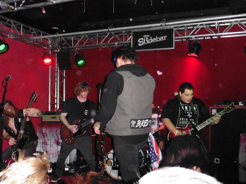Fullerton, Cali. is a great place to be if you want to check out an awesome metal concert. It’s full of rich history and it has a bunch of great rock ‘n’ roll bars/venues that can rival those in West Hollywood. One particular site that provides first-rate rock shows is the Slidebar Rock-N-Roll Kitchen. On January 30th, I went to the bar to check out another OC group that is sure to become the next Hatebreed or Trivium; Beneath the Buried. A group that I have followed very closely for a couple years, Beneath the Buried, is by far one of the best metal groups I have heard and seen. At the Slidebar, the band got the opportunity to show what they are made of by opening for alternative metal giants, Eyes Set to Kill. I have to say, this was one of the best local shows I have ever attended.